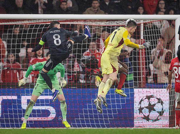 眼看时间流逝而场面没有好转,阿韦洛亚沉不住气,一口气换掉3人。作为场上唯一的调度者,全场发挥不错的居莱尔不理解为什么自己会被卜拉欣·迪亚斯换下。这样皇马在最后10分钟就只能乱拳强攻,而头球出色的贡萨洛并不在场上。大雨、压力加上对判罚不满,本菲卡的防线没崩,皇马的心态先崩了。劳尔·阿森西奥和罗德里戈先后被罚下场。补时理论上的最后时刻,皇马拿到前场任意球,不见库尔图瓦上来帮忙。反倒是2分钟后,只有再进一球才能逃出生天的本菲卡拼了。穆里尼奥让门将特鲁宾抢点,还真顶进了足以载入史册的一记压哨头球!